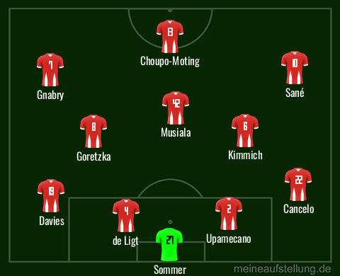 Ich vermute, dass zumindest Gnabry seine Chance bekommt. Vielleicht auch schon Musiala, aber da sollte man schon vorsichtig sein.