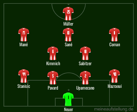 Wenn die Vermutungen stimmen wären de Ligt, Hernandez, Davies, Musiala, Gnabry und Sarr draußen.
