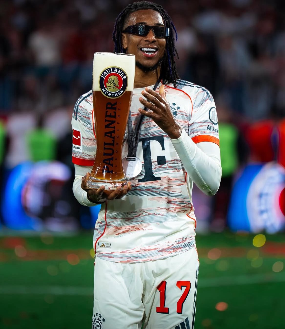 "Michael Olise wird nach #TSGFCB für seine starke Debüt-Saison mit 17 Toren und 21 Vorlagen in 50 Pflichtspielen von seinen Teamkollegen gefeiert. „Es macht so viel Spaß mit ihm. Wie er trainiert und spielt, ist überragend“, sagt Aleks Pavlovic. Und Joshua Kimmich meint: „Wenn man sieht, wie früh Michael immer da ist, wie er sich vor dem Training präpariert, wie lange er auch danach noch arbeitet, länger draußen bleibt und im Kraftraum seine Sachen macht, dann ist das die Belohnung für die harte Arbeit. Und man darf nicht vergessen: Er kommt aus einem Sommer ohne Urlaub, er hat noch bei Olympia teilgenommen. Das dann auf diesem Level so durchzuziehen, ist schon außergewöhnlich.“
