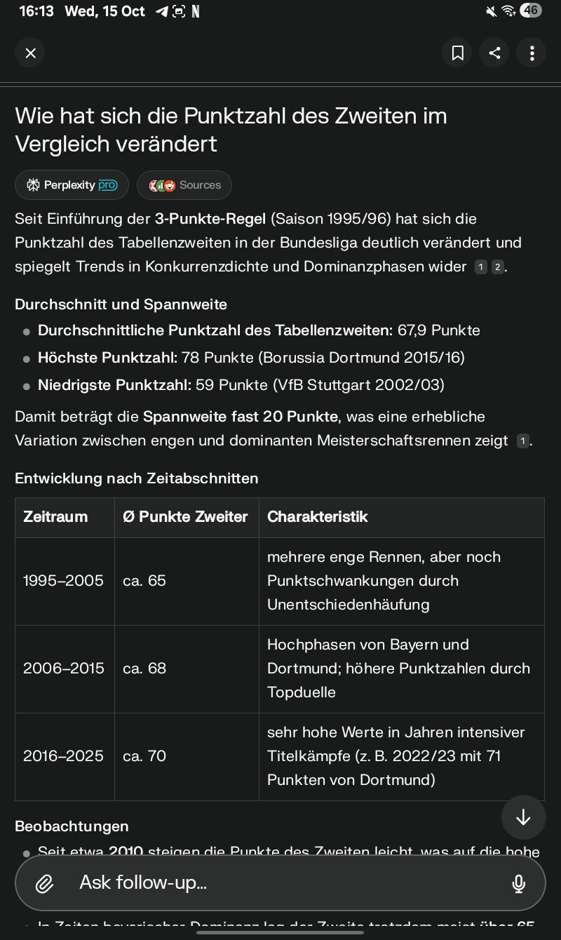 Selbst seitdem (also 2000 aus dem letzten Beispiel) gibt es aber eine immer weitergehende Entwicklung (Quelle Perplexity) auch beim Tabellenzweiten nach oben: