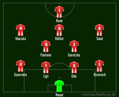 So könnte ich es mir vorstellen. Allerdings auch anstatt Müller Tel rein und Musiala als OM und Tel als LA. Coman benötigt eine Pause (total außer Form–>schlechte Entscheidungsfindung)