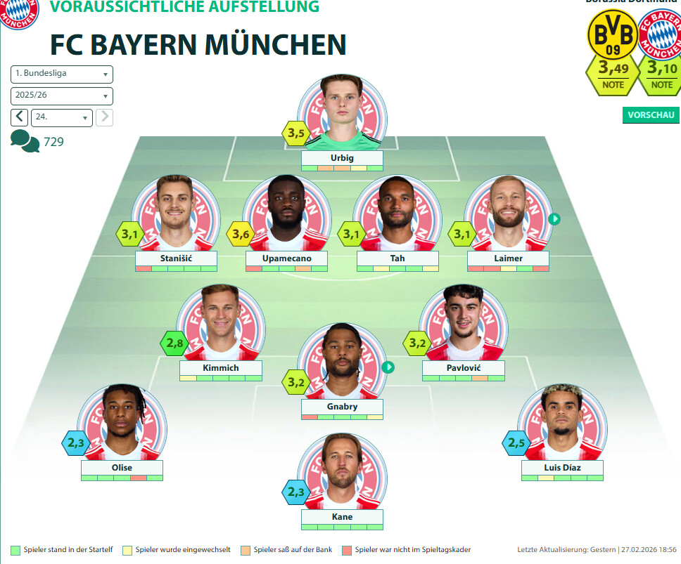 Eigentlich muss Musiala starten. Ggf. dann kommende Woche vor CL etwas schonen.