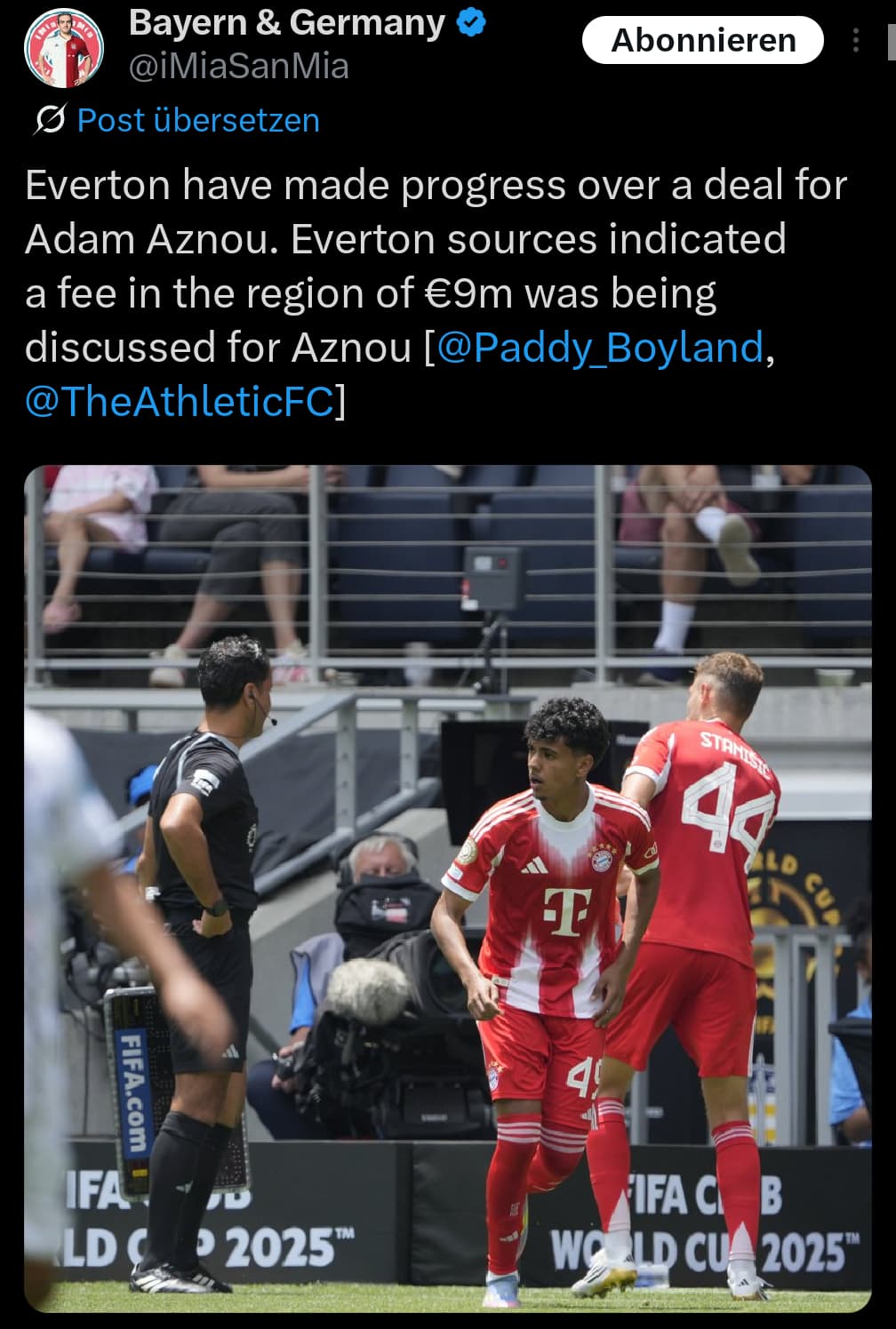 „Die Verantwortlichen wünschen sich, dass Aznou die Chance durch die Ausfälle von Alphonso Davies und Hiroki Ito entschlossener packt, wozu die Leistungen im Training gehören.“