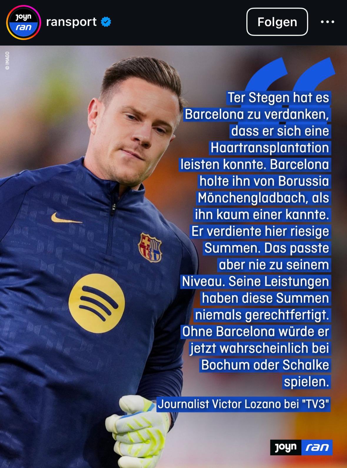 Die reden aber schon vom Spieler, der in Xavis Meistersaison 22/23 26 (!) weiße Westen hatte und als erster Torhüter jemals (!!) zum Spieler der Saison in La Liga ernannt wurde?