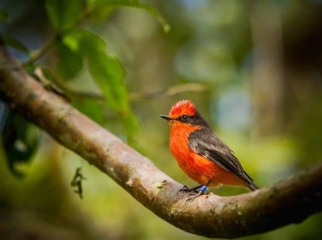 Das Beste, was ich in der Richtung finden konnte, ist dieser rote Vogel, der in Peru lebt und auf dessen Speisekarte Schmetterlinge auch gerne stehen.