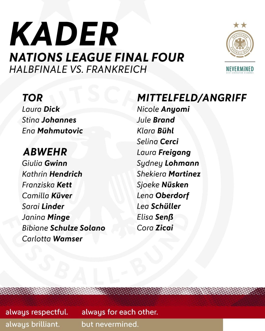 " Schließlich hatten Bundestrainer Christian Wück und sein Stab geplant, mit Mahmutovic zwischen den Pfosten in die Halbfinalspiele der Nations League gegen Frankreich zu gehen."