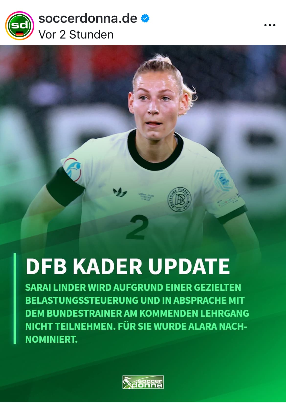 @Irina_Mira Linda Dallmann wurde für Lena Oberdorf nach nominiert für die Spiele geg Frankreich