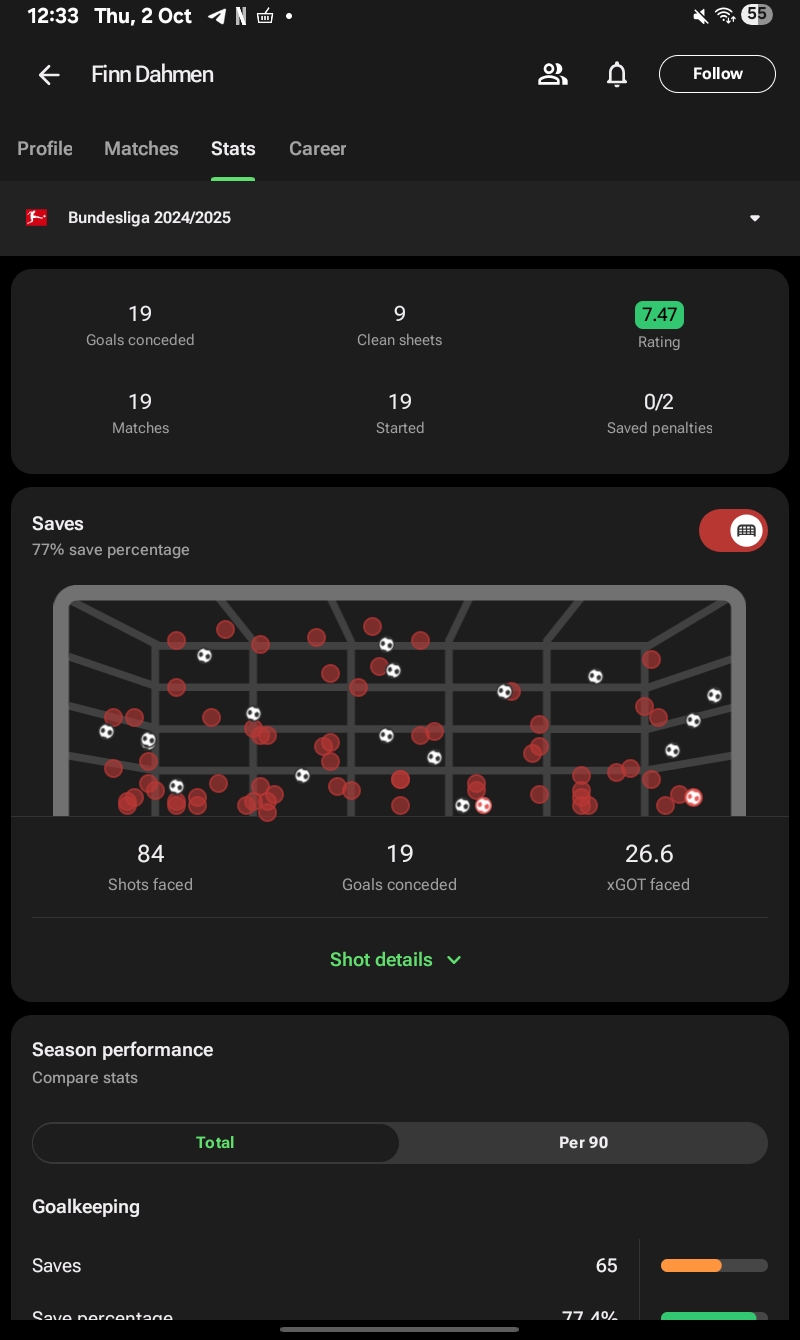Und dafür, dass er nur in der Rückrunde zum Einsatz kam sind fast 8 prevented Goals in der letzten Saison ein unfassbar hoher Wert!