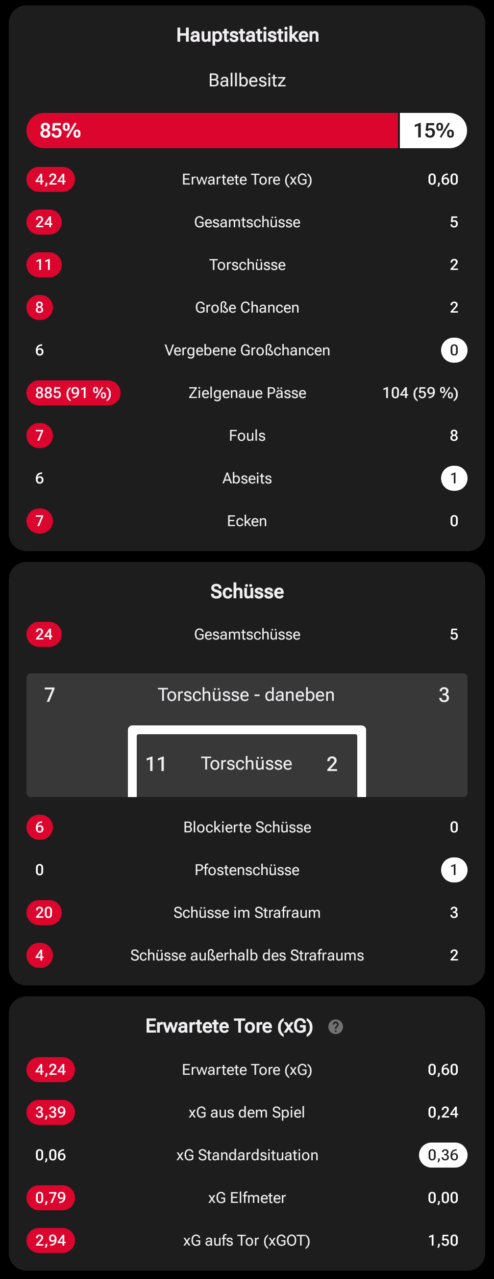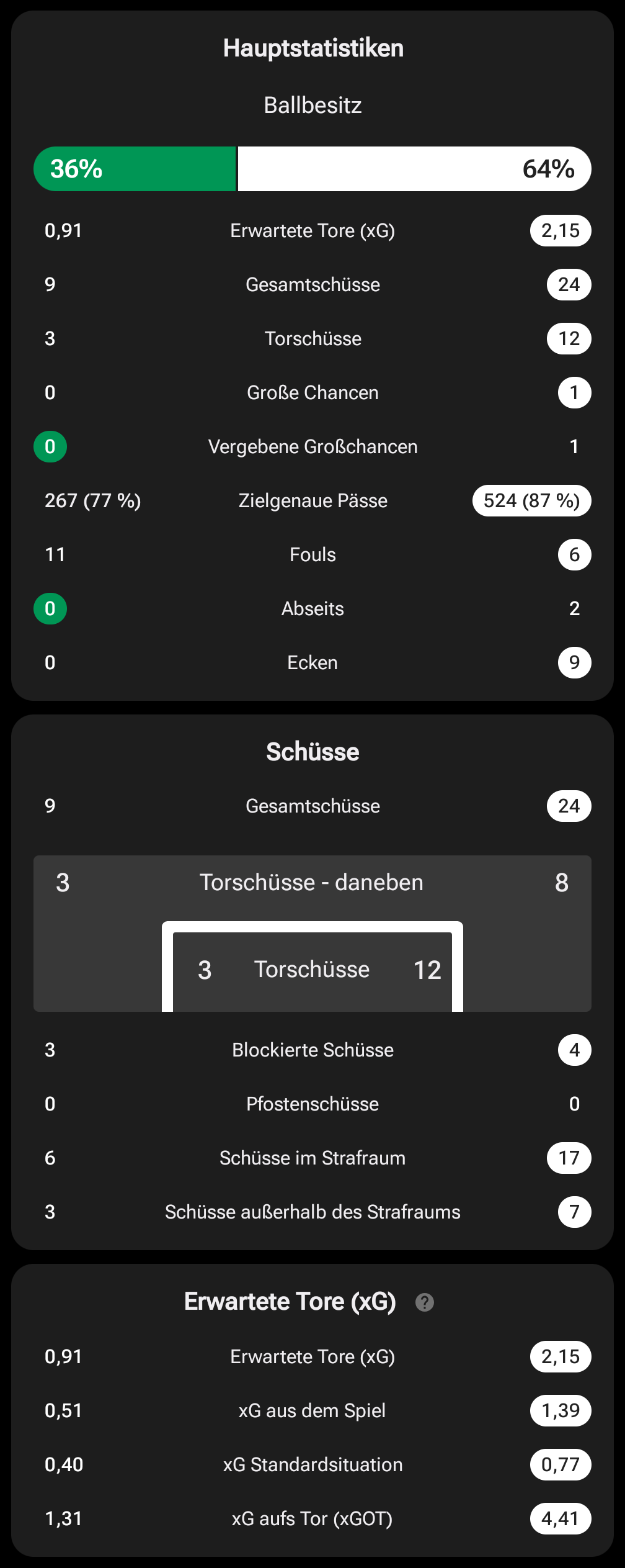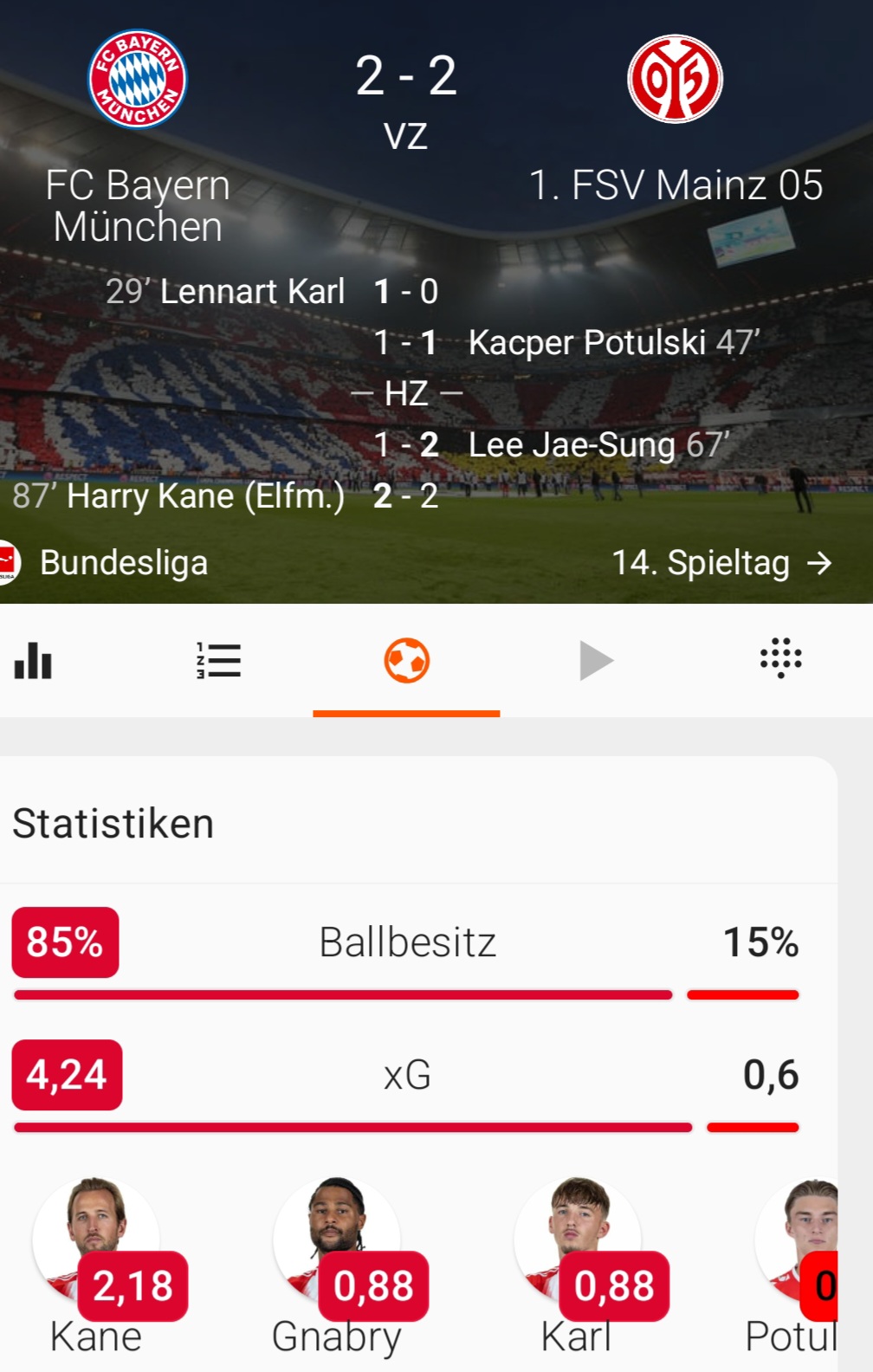 70 von diesen 85% Ballbesitz waren ungefährliches Ballgeschiebe und die xG sind toll, gebrannt hat es im Mainzer Strafraum dafür aber ziemlich wenig.