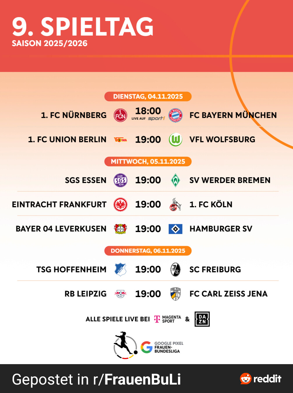 Von mir aus auch dreimal 1:0 oder 2:1, Hauptsache neun Punkte. Das letzte Auswärtsspiel in Nürnberg mit ähnlicher Verletztensituation und damals schwächere Nürnbergerinnen als sie es heute sind, ist noch in sehr präsenter Erinnerung btw.