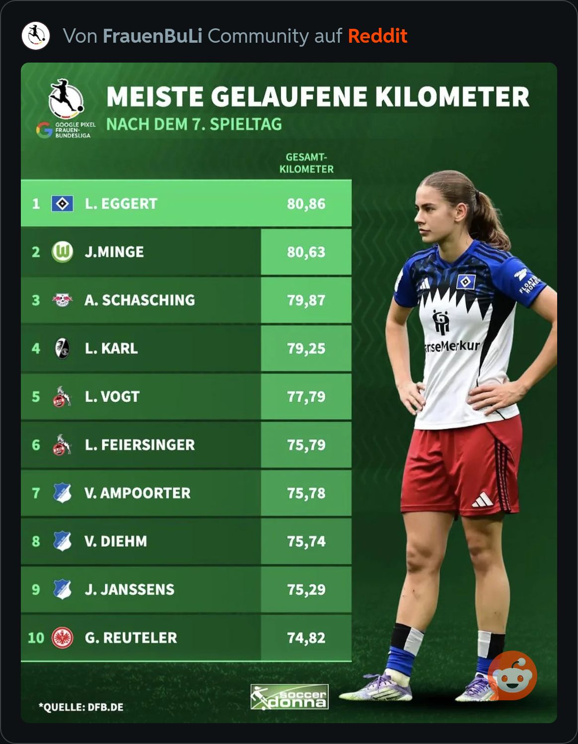 Victoria Schwalm vom HSV hat sich in der 89 geg Frankfurt am Samstag ohne Fremdeinwirkung einen Miniskusriss zugezogen, OP morgen die Hinrunde ist damit für Sie leider vorzeitig beendet. Gute und schnelle Genesung ![]()