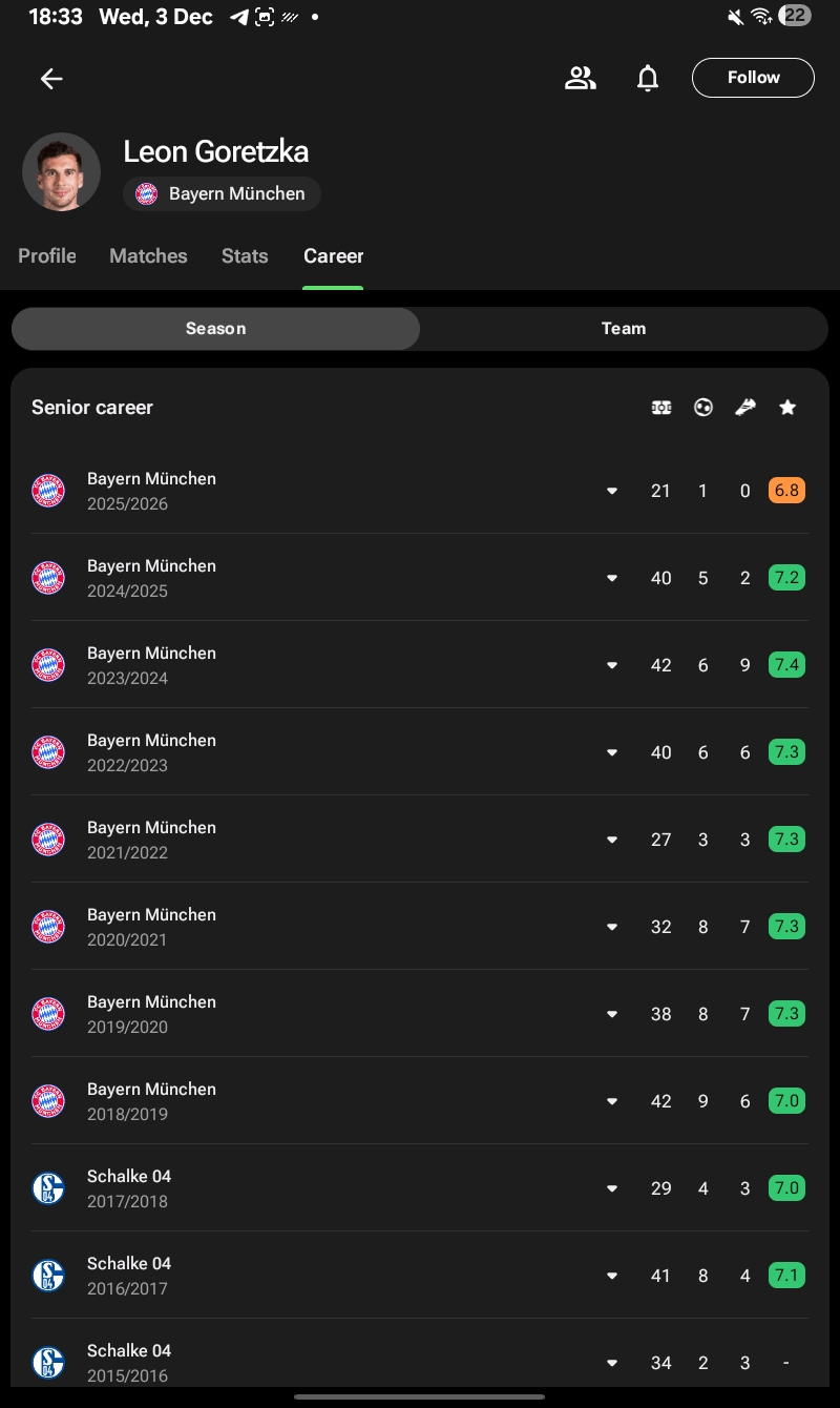 Goretzka hat bei uns, wie bei der Nationalmannschaft das Problem, dass er die Ballzirkulation spürbar verlangsamt. Das ist gegen tiefstehende Gegner ein großes Problem, weil gegen diese schnell gespielt werden muss, um etwaige Unordnungssitiationen im Gegenpressing, also dadurch entstehende Räume schnell bespielt werden müssen, bevor der Gegner die Defensivstruktur wieder hergestellt hat. Das machen Pavlovic und auch Bischof um Längen besser. So passt er weder zu uns optimal noch zur N11. Mir kommt er ein wenig vor wie Palhinha. Mit einer anderen Taktik oder einem anderen Trainer würde er möglicherweise besser spielen. So aber ist auch vor dem Hintergrund seines sehr hohen Gehaltes ein Abschied die beste Lösung