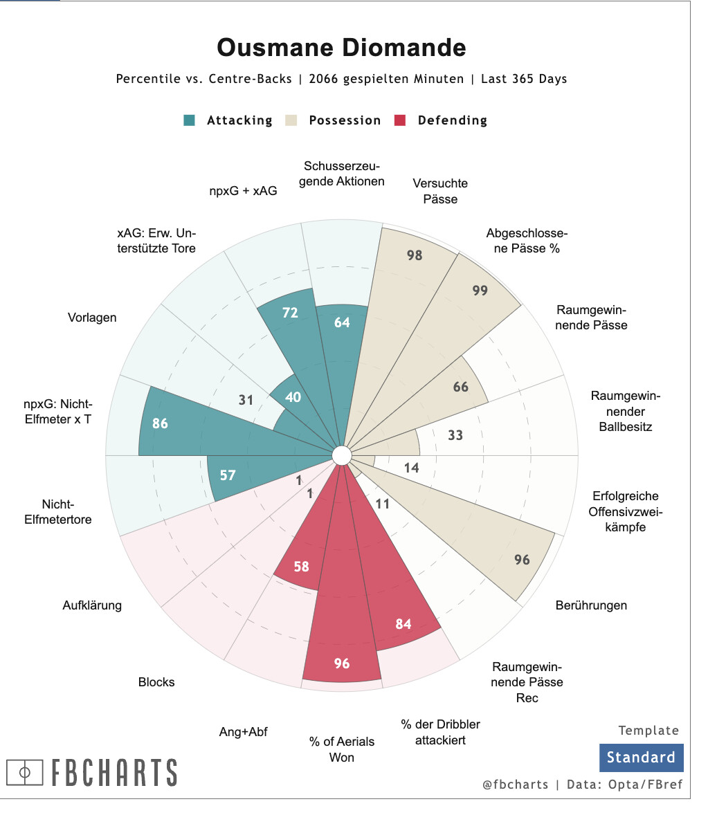 Die Statistiken hier sind jetzt natürlich nicht so vielversprechend, aber an sich wurde er schon von mehreren Scoutingportalen als perfekter Innenverteidiger für ein dominantes Ballbesitzspiel beschrieben.