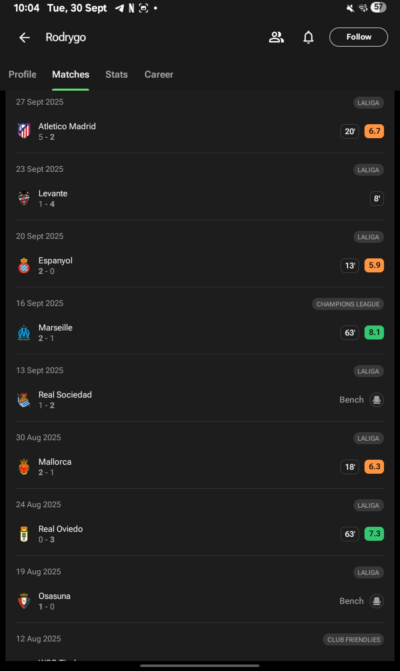 Bei Olise stimme ich übrigens nicht zu, der hatte unter anderem Vorlagen gegen Leverkusen in der CL und Dortmund in der Liga, außerdem einen Treffer im auf der Kippe stehenden Zwischenrundenspiel gegen Celtic. Ist aber auch egal, weil man es ja nicht sinnig vergleichen kann, weil die Saison ja eben noch so jung ist.