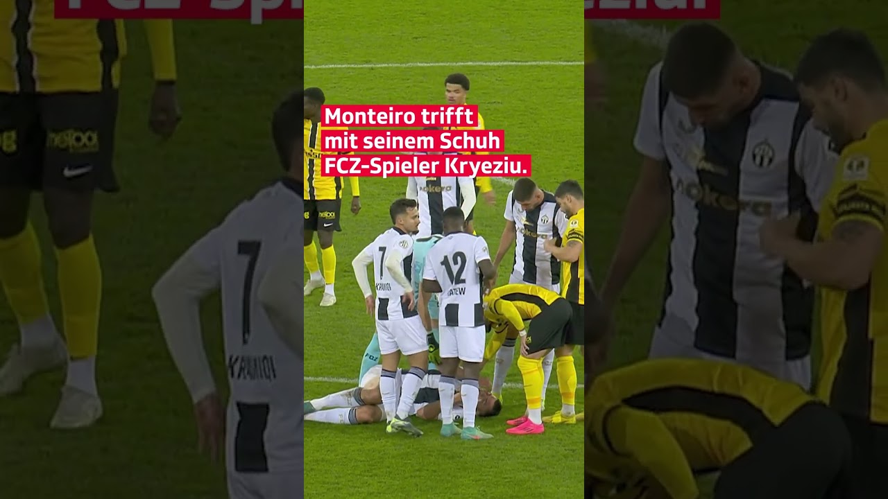 Ein YB Spieler versucht frustriert den Schiedsrichter mit seinem Schuh abzuwerfen und streckt dabei den Gegenspieler nieder