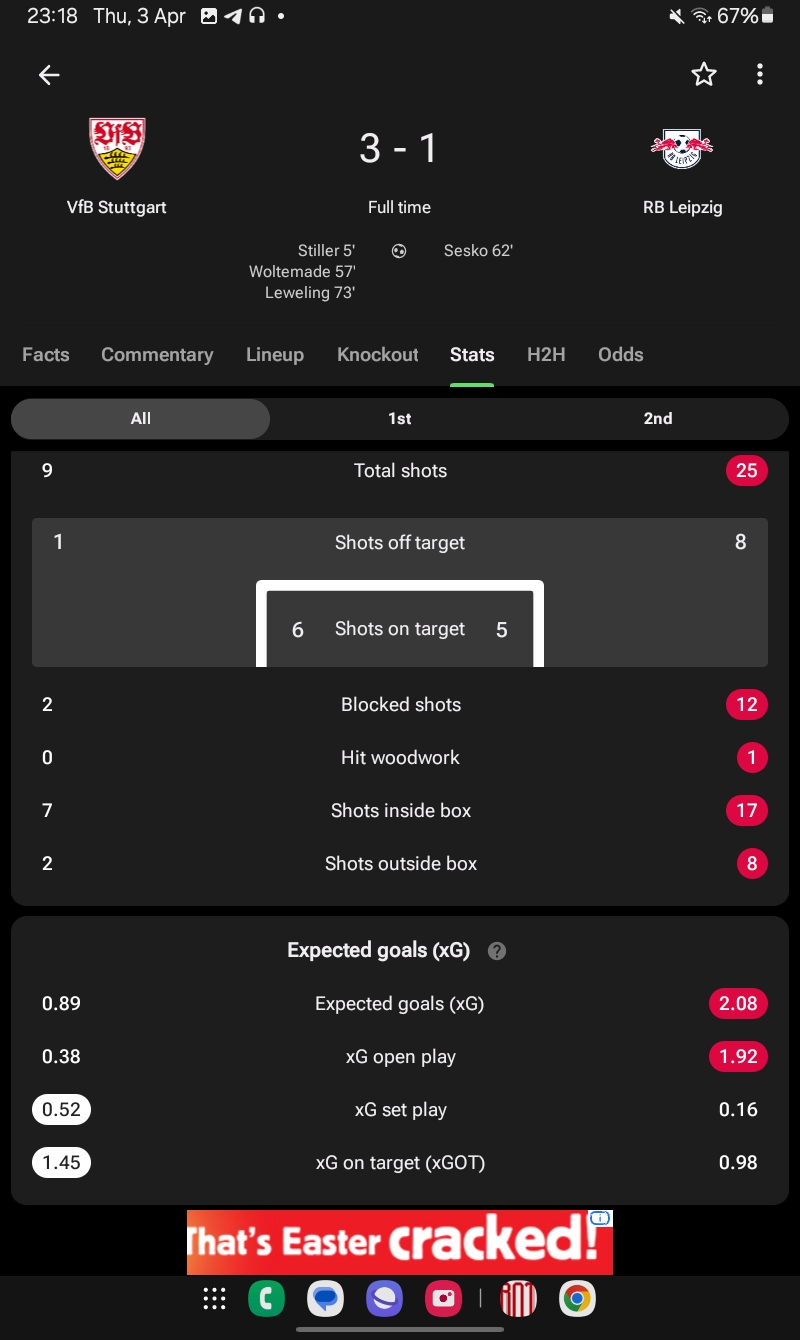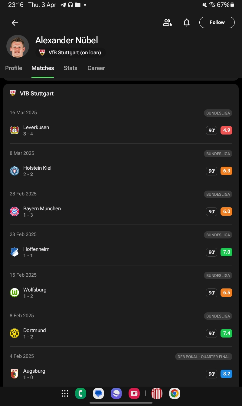 Leider ja aber nur im dt. Pokal - hätte er in der CL auch nur durchschnittlich performt hätte der VFB quasi sicher die Ligaphase überstanden…