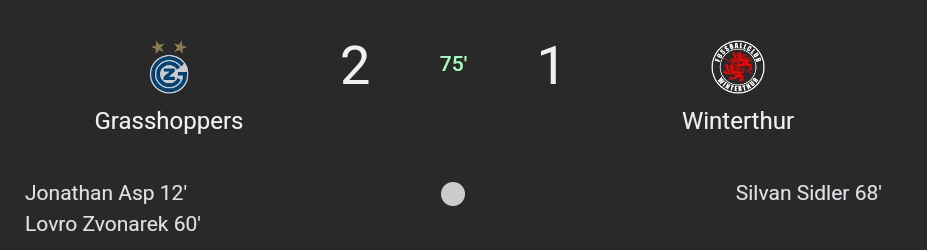 Die Grasshoppers spielt 2:2 gegen Winterthur. Asp Jensen und Zvonarek stehen beide in der Startelf. Und tatsächlich schießt auch jeder sein Tor. Als beide in der 79.Minute runter gehen, fällt noch der Ausgleich. Diese Leihen lassen sich bisher gut an.