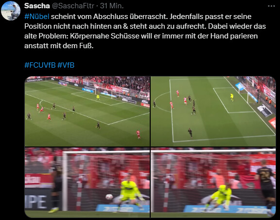 Der VfB verliert zum Auftakt 1:2 bei Union Berlin. Nübel war wieder rechtzeitig fit geworden. Bei beiden Toren war er chancenlos, ansonsten fast unbeschäftigt.