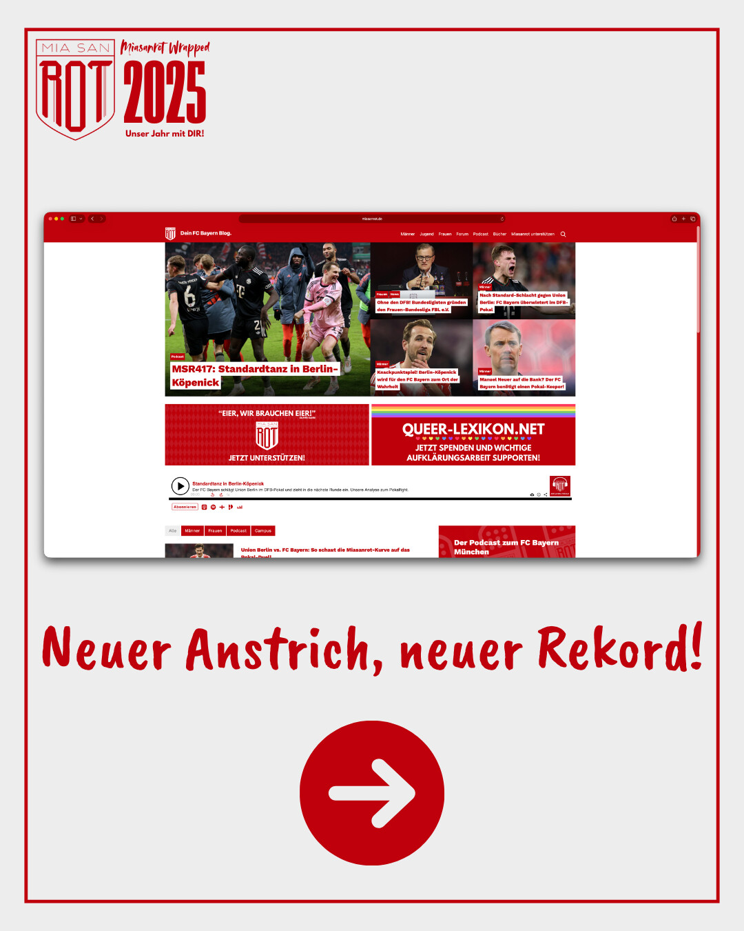 Was „wir“ brauchen ist ja mehr Präsenz. Die besten Artikel (und rundum den FCB gibts es von Fanseiten eigtl nichts was qualitativ hochwertiger ist als MiaSanRot!!!) bringen halt nichts wenn sie wenig Personen erreichen