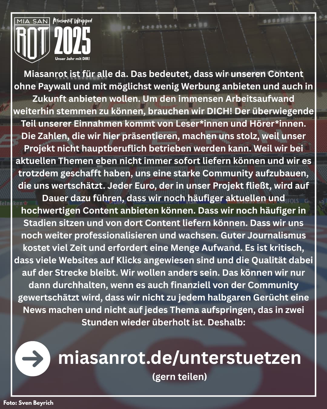Ich werde im Dezember oder Januar, je nachdem wann ich die Zeit dafür finde, wieder einen Transparenzbericht schreiben, der Einblicke in unser Jahr 2025 aus redaktioneller Sicht gibt. Hier ist nochmal der für das Jahr 2024: Miasanrot, Transparenzbericht: Klick-Million ist nicht alles
