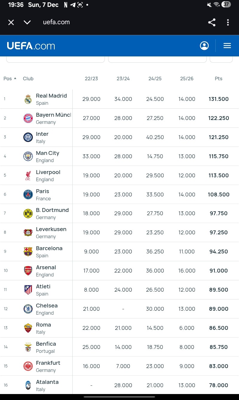 Aber: Aktuell hat man genau wie die PL zwei Vereine in den Top 8 der CL Tabelle, die für direktes Achtelfinales qualifizieren.