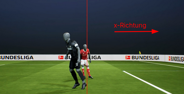 Ich weiß nicht, ob ,du Georg ,die Technik nicht sogar unterschätzt. Wenn wir ein 3D-Darstellung generieren erstellen, warum sollten dann überhaupt frames selektiert werden. Man bekommt den Zeitpunkt des Abspieles über den Sensor im Ball (der ja wsl. deutlich feiner auflöst) und dann interpoliert man die 3D-Darstellung zwischen den beiden dem Abspielzeitpunkt nächstliegenden Frames. Hier sollte dann der Fehler im sehr kleinen Bereich liegen. D.h. Die Hauptfehlerquelle ist wsl. die Auswahl der Abseitslinie. Diese wird auch über die 3D-Daten generiert und der code sucht dann den letzten x-Wert des interpolierten Frames in x (siehe Bild).