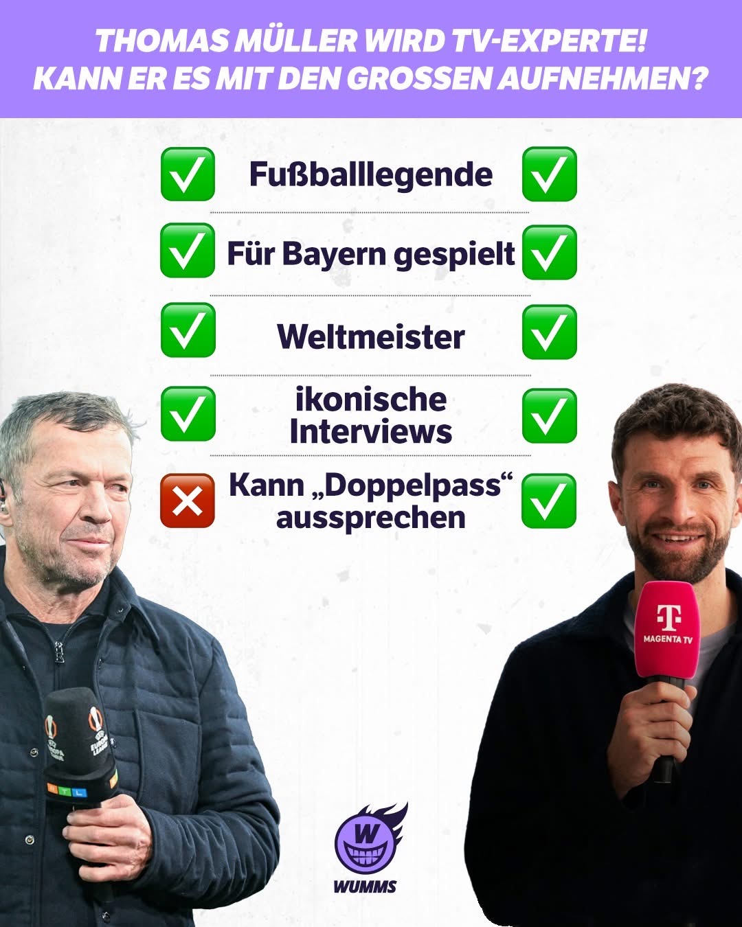 Nein, Müller würde ja direkt im Spiel kommentieren und ein Interview mit sich selbst führen. The Müller takes it all