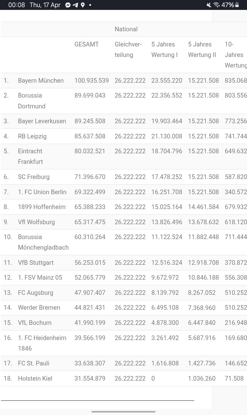 PPS: und analog zu eben wäre ein Wechsel von Dazn auf Bayern only und Rest bleibt hier auch ein „Bliebe beim bisherigen“ - uns geht’s hier ja mal vor allem um die Frage der Gesamt Einnahmen