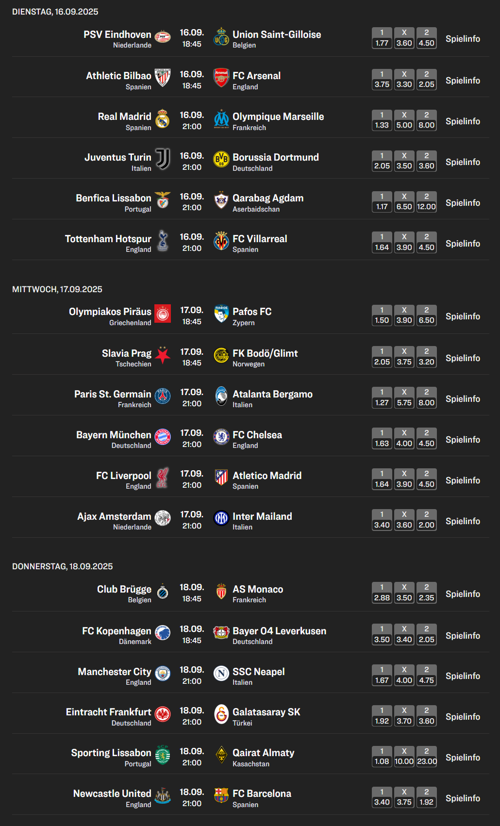 Es gibt keinen extra-Thread für die Champions League Spieltage. Scheint für die meisten Fans keine besonders spannenden Partien zu geben.
