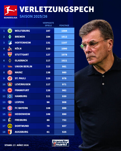 VfL Wolfsburg & Werder Bremen von Verletzungspech geplagt – BVB im Glück | Transfermarkt