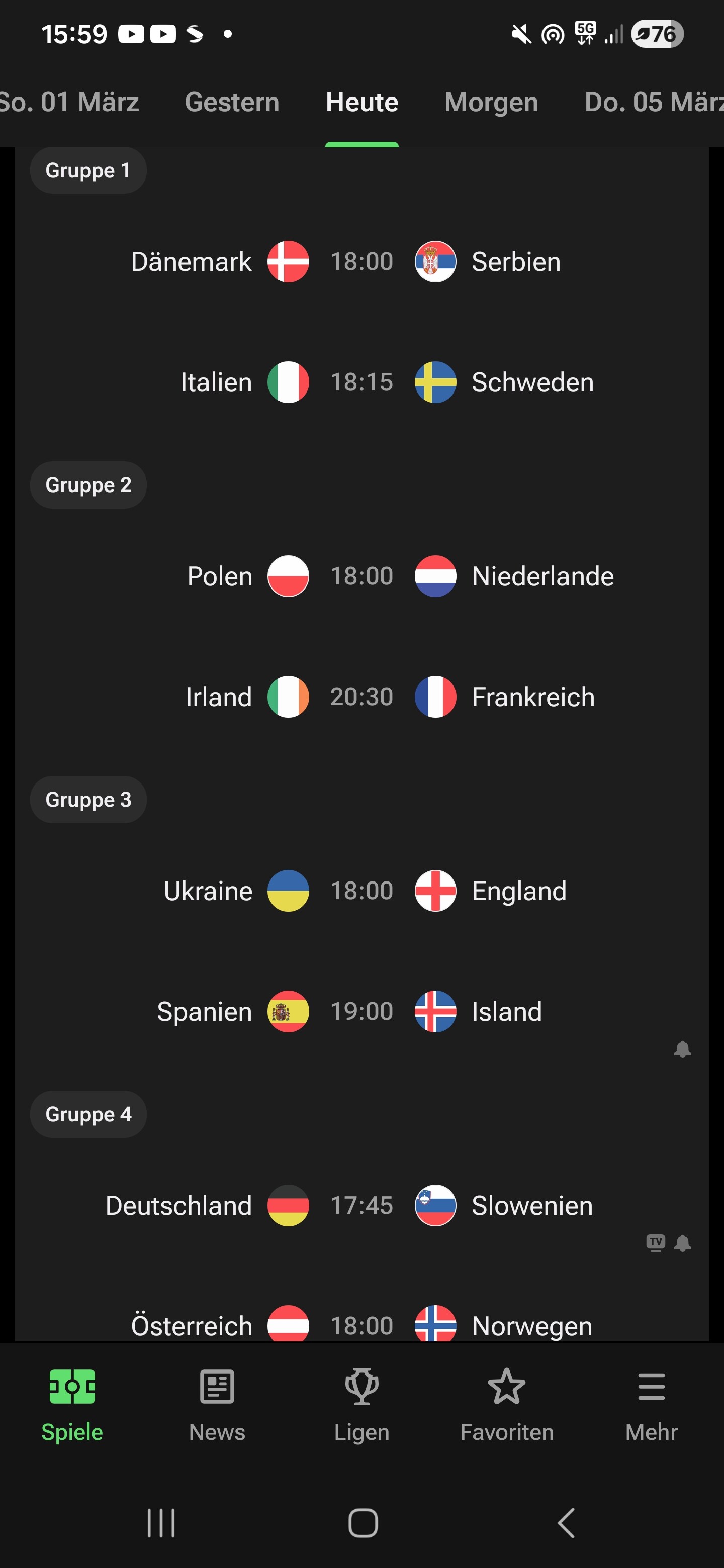 Frankreich spielt geg Irland Polen und die Niederlande