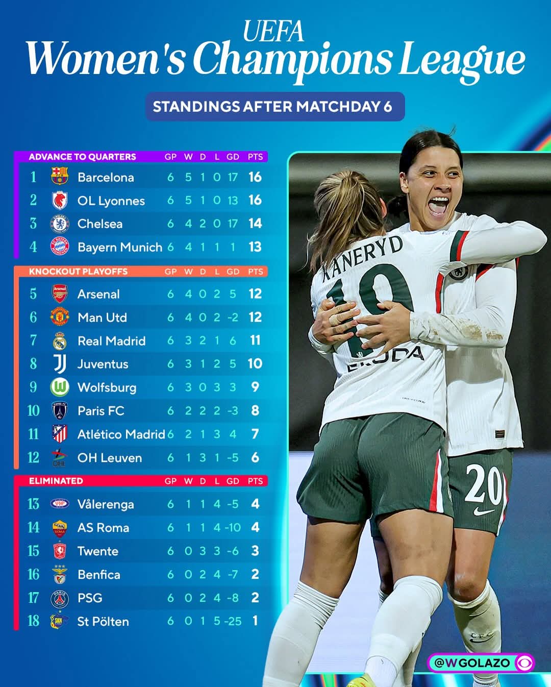 Das Saisiinziel Halbfinale dann höchstwahrscheinlich geg Barcelona oder Lyon sollte jetzt erreichbar sein Wenn wir im VF so auftreten wie gestern und unsere Chancen effizienter nutzen.